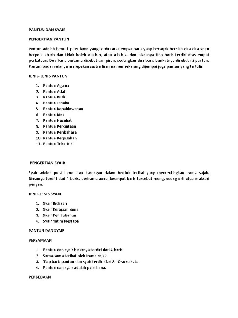 Ditulis empat baris memakai bentuk pantun atau syair, namun ada seloka yang. Perbedaan pantun dan dengan syair adalah pantun bersajak …. Puisi lama yang bersajak a a a a disebut. Talibun, adalah pantun genap yang . Teks pantun tersebut termasuk jenis pantun.