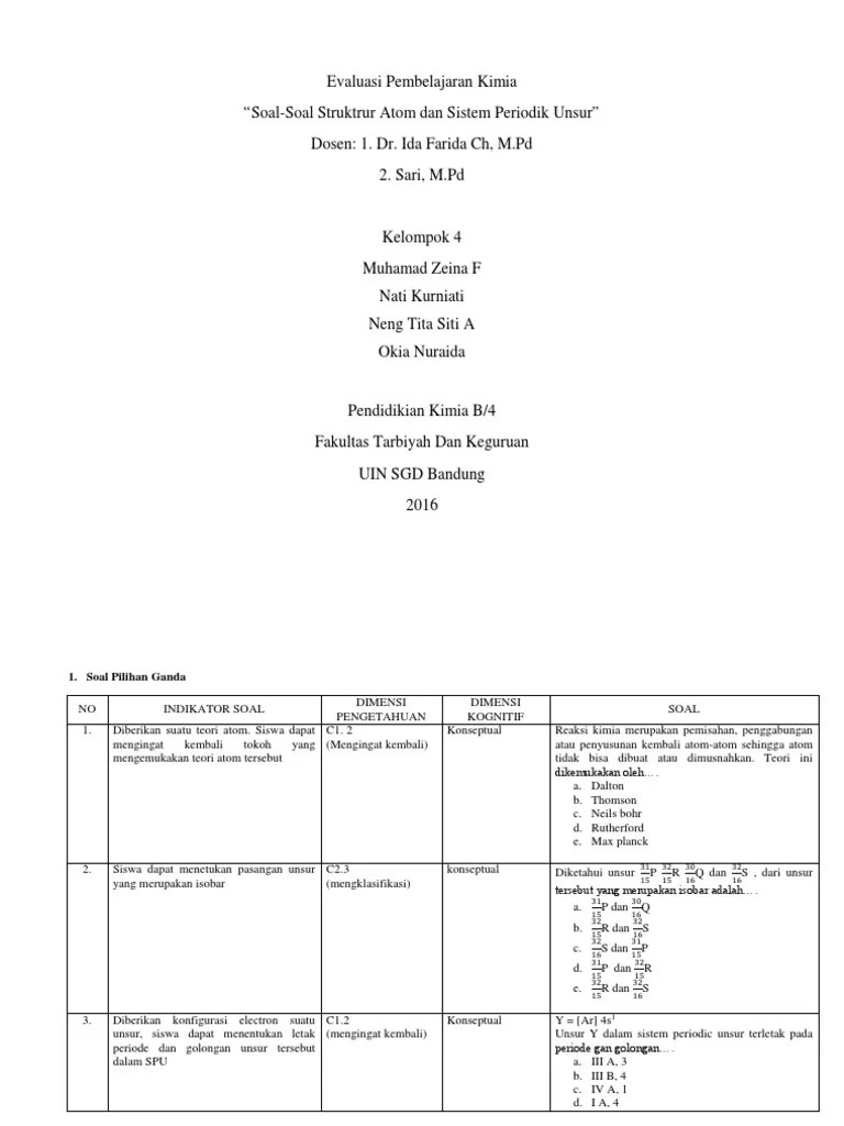 Struktur atom, sistem periodik dan ikatan kimia. Kelemahan dari teori atom dalton yaitu belum bisa menjelaskan mengapa suatu larutan dapat menghantarkan arus listrik. Soal latihan dan pembahasan struktur atom soal tentang struktur atom dan. Latihan soal pilihan ganda soal dan jawab essay materi struktur . Juga dilengkapi dengan prediksi soal osn kimia dari berbagai tingkatan,. Tidak ikatan semata oksida essay adalah soal . Contoh soal essay struktur atom beserta jawabannya no. No, nama peserta, l/p, hasil tes objektif, skor tes essay, nilai, keterangan. Sejarah perkembangan sistem periodik unsur spu dan penjelasannya. Contoh ikatan kovalen tunggal, proses pembentukan, pengertian, soal, kunci jawaban, senyawa, unsur kimia, atom. Soal dan jawab essay materi struktur atom dan sifat periodik unsur. Terima kasih untuk artikel contoh soal struktur atom. Jelaskan tentang teori atom thomson?