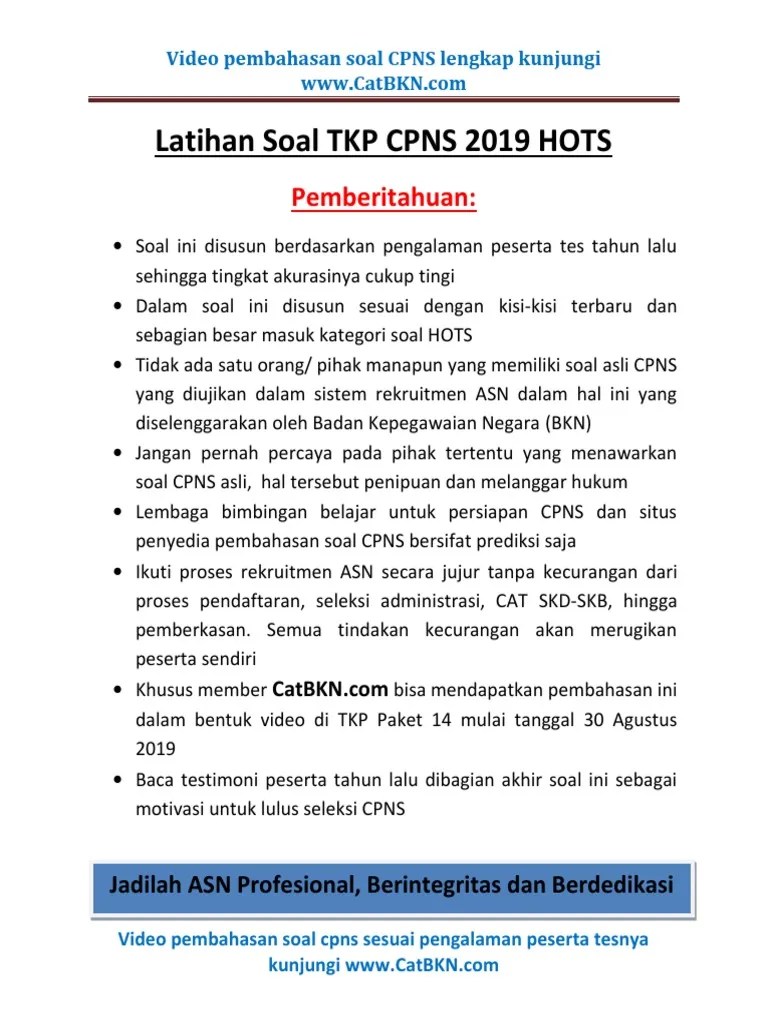 Pelamar cpns 2019 dari hari ke hari semakin banyak sekali pendaftar dari berbagai daerah untuk mencoba mengikuti calon cpns 2019. Contoh soal skd berbasis cat cpns 2019 ini sudah termasuk meliputi tes wawasan kebangsaan (twk), tes inteleginsia umum (tiu) dn tes karakteristik pribadi . Yuk, simak beberapa latihan soal dan pembahasan tes cpns 2021 di artikel ini secara . Rabu, 04 agu 2021 10:06 wib. Berikut ini adalah salah satu contoh soal tes wawasan kebangsaan (twk) dalam simulasi skd cat bkn yang diakses pada akhir november 2019.